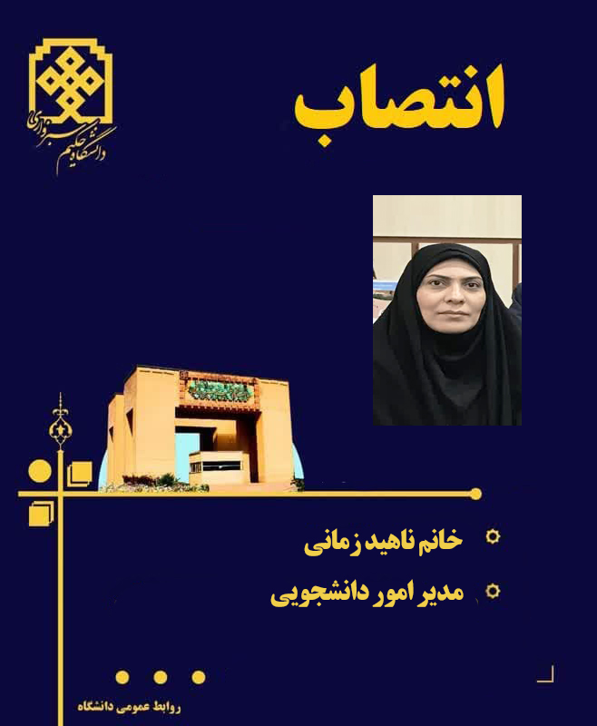 طی حکمی از سوی رئیس دانشگاه، خانم ناهید زمانی به سمت “مدیر امور دانشجویی” دانشگاه منصوب شد.