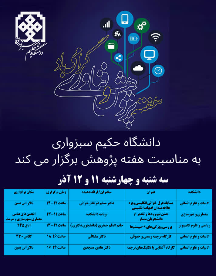 🔵دانشگاه حکیم سبزواری به مناسبت هفته پژوهش برگزار میکند