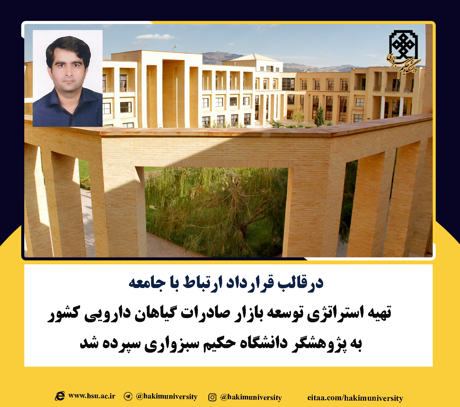 در قالب قرارداد ارتباط با جامعه بین اتاق بازرگانی،صنایع، معادن و کشاورزی ایران و دانشگاه حکیم سبزواری ” تهیه استراتژی توسعه بازار صادرات گیاهان دارویی کشور “به آقای دکتر مرتضی محمدی عضو هیات علمی گروه اقتصاد دانشگاه حکیم سبزواری سپرده شد.