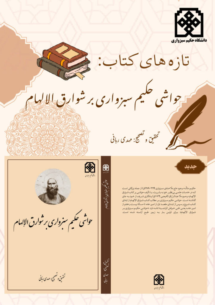 انتشارات دانشگاه حکیم سبزواری در تازهترین فعالیت خود، کتاب «حواشی حکیم سبزواری بر شوارق الإلهام» را برای نخستینبار منتشر کرد. این اثر از یادگارهای گرانسنگ حکیم متأله مرحوم حاج ملاهادی سبزواری (۱۲۱۲–۱۲۸۹ق) است که در قالب حواشی علمی بر اثر معروف «شوارق الإلهام» تألیف مرحوم ملاعبدالرزاق لاهیجی (۱۰۷۲ق) نگاشته شده است.