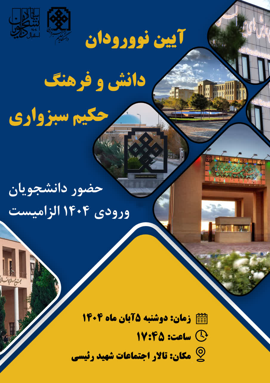 همایش دانشجویان جدیدالورود سال ۱۴۰۴ دانشگاه حکیم سبزواری با حضور رئیس دانشگاه، اعضای هیئترئیسه، مدیران، اعضای هیئت علمی و جمع پرشور نودانشجویان مقطع کارشناسی برگزار شد. در این آیین، دکتر علی تسنیمی، رئیس دانشگاه حکیم سبزواری، ضمن تبریک به دانشجویان...
