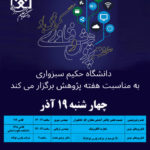 دانشگاه حکیم سبزواری به مناسبت هفته پژوهش برگزار میکند چهارشنبه 19 آذر ماه، ساعت 12 کلاس 119 دانشکده نفت و...