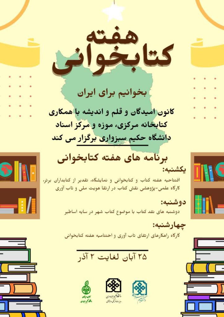 کانون های امیدگان و قلم و اندیشه با همکاری کتابخانه مرکزی، موزه و مرکز اسناد دانشگاه حکیم سبزواری به مناسبت هفته کتاب و کتابخوانی برگزار میکند: