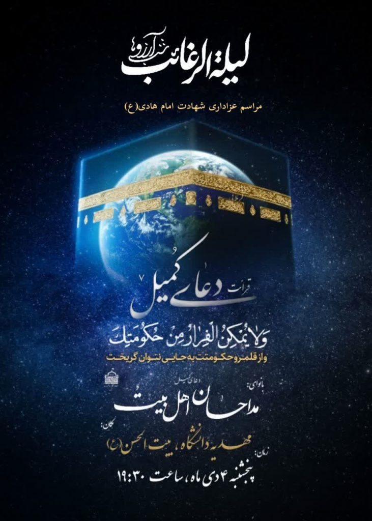 گزارش تصویری مراسم مناجات خوانی شب لیله الرغائب وعزاداری شهادت امام هادی علیه السلام دی ۶, ۱۴۰۴ ادامه مطلب »