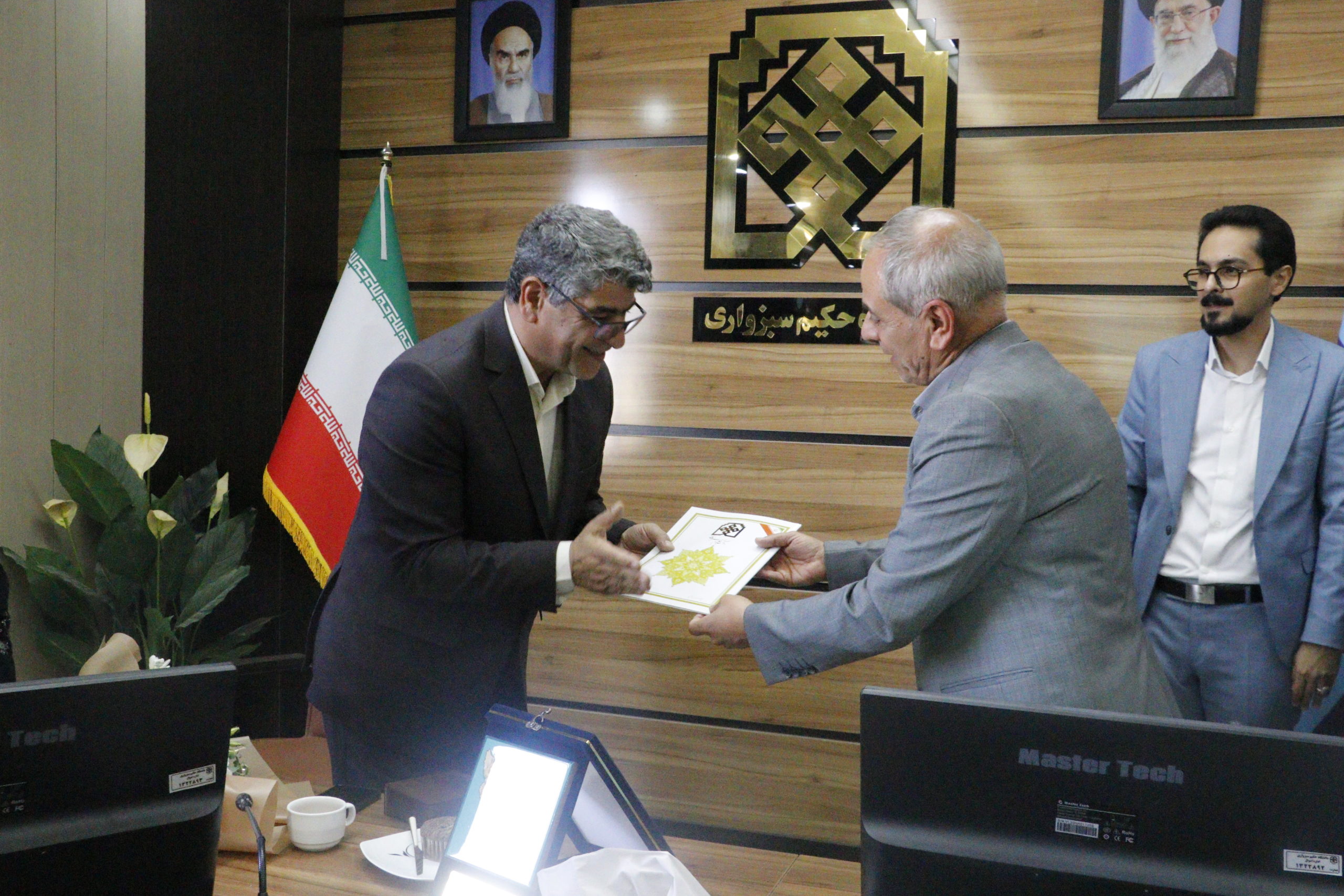 در این مراسم که با حضور رئیس دانشگاه حکیم سبزواری، جمعی از هنرمندان برجستۀ سبزواری، مسئولان شهرستان و اعضای هیأت علمی دانشگاه همراه بود، نشان «فرهنگوَر خراسان» به استاد علی طوسیثانی، استاد برجستۀ خوشنویسی و از چهرههای شاخص هنر خط در خراسان، اهدا شد.