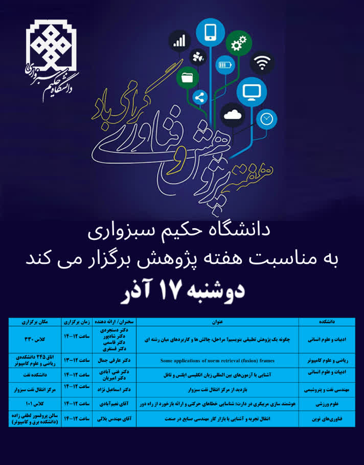 دانشگاه حکیم سبزواری به مناسبت هفته پژوهش برگزار میکند