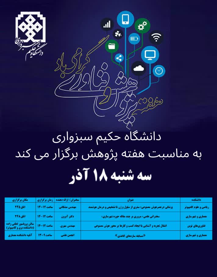 دانشگاه حکیم سبزواری به مناسبت هفته پژوهش برگزار میکند