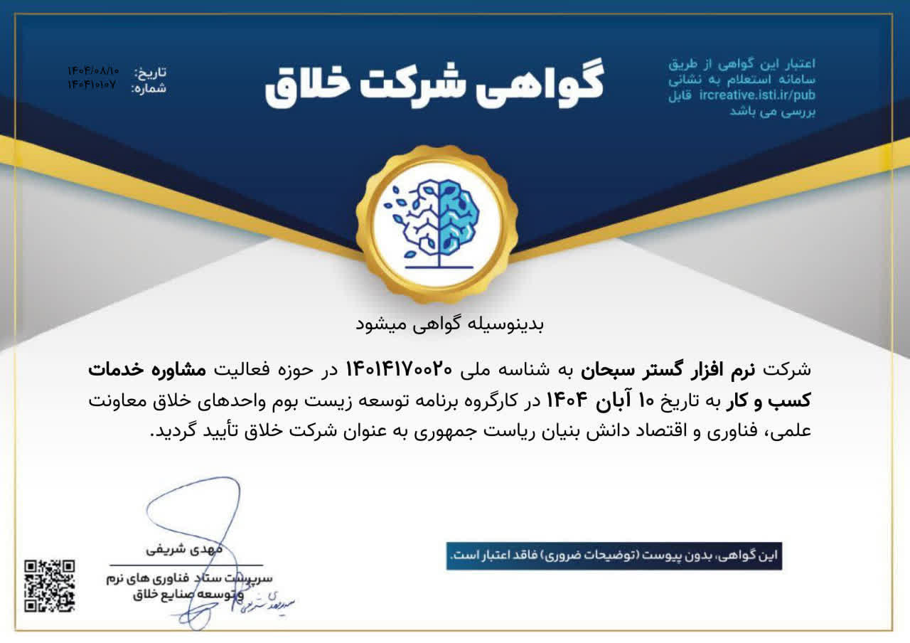 شرکت مستقر در مرکز رشد دانشگاه حکیم سبزواری، به جمع شرکت های خلاق معاونت علمی، فناوری و اقتصاد دانشبنیان ریاستجمهوری پیوست. شرکت فناور نرمافزار گستر سبحان بهنمایندگی مهندس خسروزاده موفق به دریافت مجوز خلاقیت برای نوآوری خود با عنوان “کارت ویزیت اسپیدی کارت” شده است.