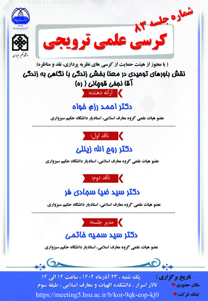هشتاد و سومین کرسی علمی ترویجی:نقش باورهای توحیدی در معنابخشی زندگی