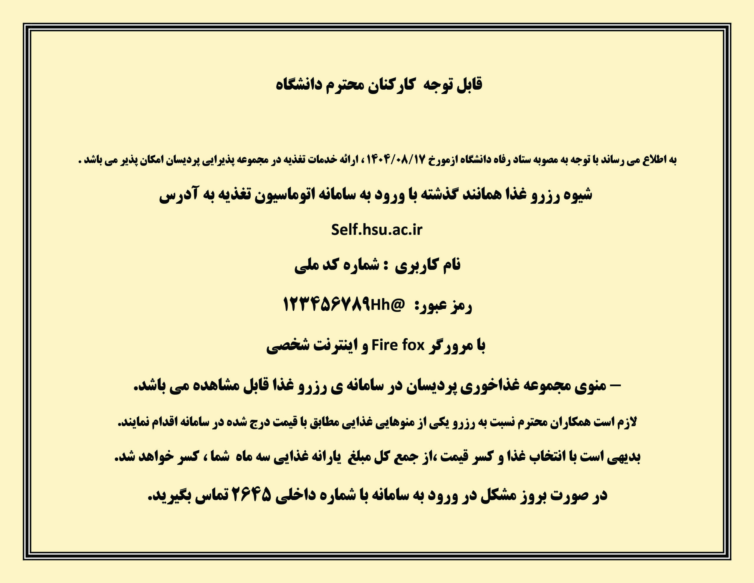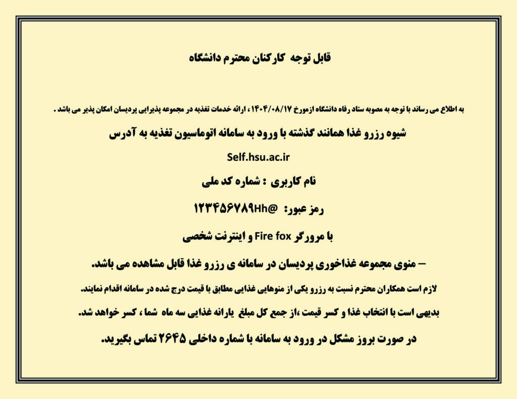 اطلاعیه ارائه خدمات تغذیه جهت اطلاع همکاران محترم