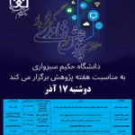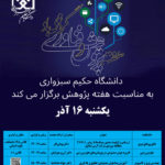 دانشگاه حکیم سبزواری به مناسبت هفته پژوهش برگزار میکند یکشنبه 16 آذر ماه، ساعت 12 کلاس 168 علوم انسانی(دانشکده فناوریهای...