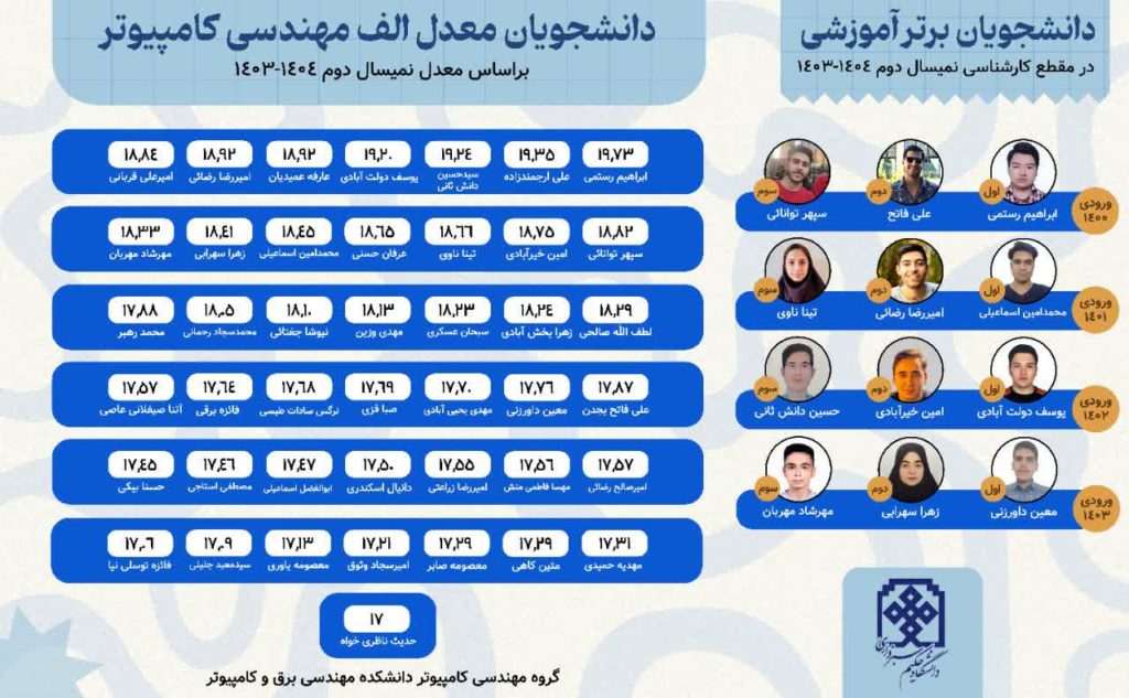 دانشجویان برتر گروه مهندسی کامپیوتر در سال 1403
