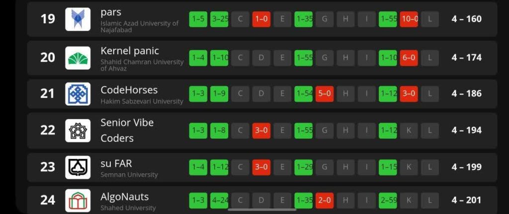 این مسابقات که معتبرترین سطح رقابتهای علمی در حوزه علوم کامپیوتر و الگوریتم در سطح جهانی است، در تاریخ ۴ و ۵ دیماه ۱۴۰۴ با حضور نخبگان برنامهنویسی از سراسر کشور برگزار گردید. تیم CodeHorses در رقابتی فشرده با حضور تیمهای قدرتمند از دانشگاههای مطرحی همچون صنعتی شریف، تهران و امیرکبیر، موفق شد با پشت سر گذاشتن بسیاری از رقبای سرسخت، رتبه ۲۱ را در میان دانشگاه های شرکتکننده از سرتاسر ایران کسب نماید.