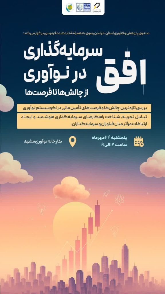 📢 صندوق پژوهش و فناوری استان خراسان رضوی با همکاری شتابدهنده فردوسی برگزار میکند: