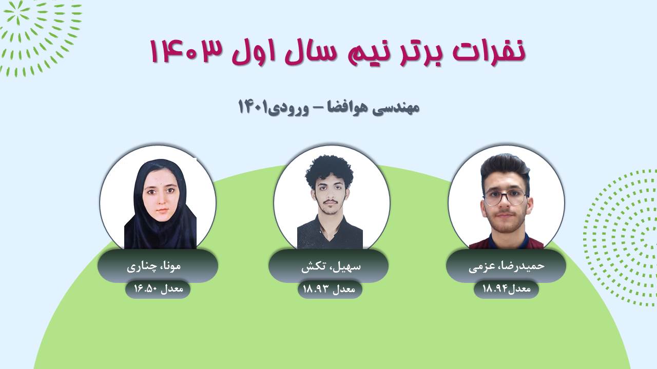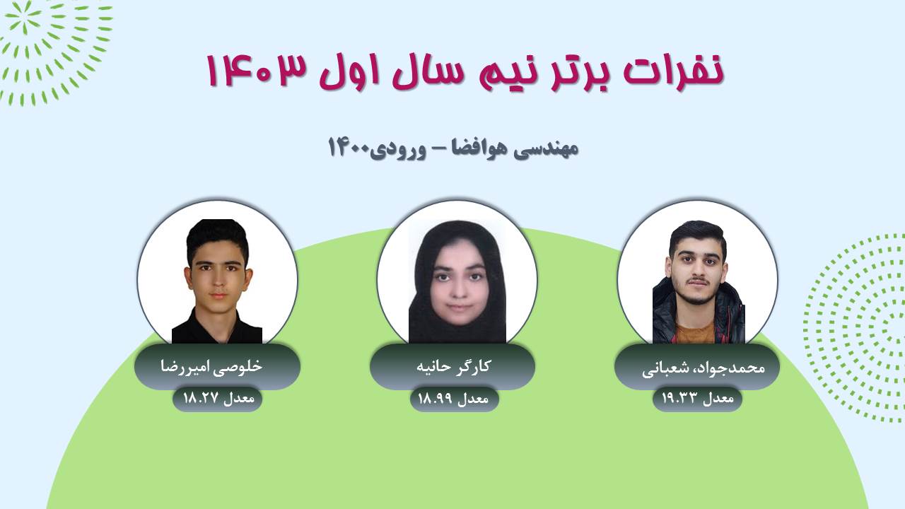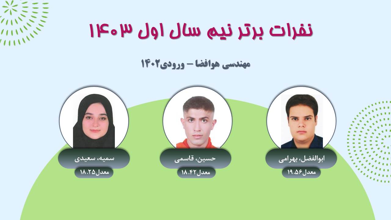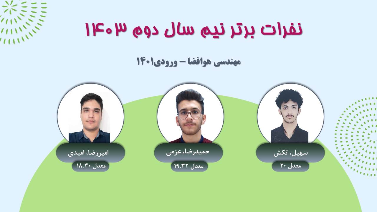 نفرات برتر گروه مهندسي هوافضا نيم سال دوم 1403 ورودي1403- هوافضاورودي1402- هوافضاورودي 1401- هوافضاورودي1400- هوافضا نيم سال اول 1403 ورودي1403- هوافضاورودي1402- هوافضاورودي 1401- هوافضاورودي1400- هوافضا نيم سال دوم 1402 ورودي1402- هوافضاورودي 1401- هوافضاورودي1400- هوافضا