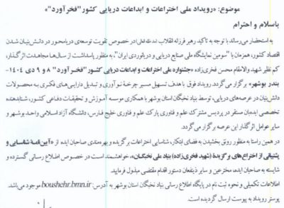 رويداد ملي اختراعات و ابداعات دريايي کشور فخرآورد