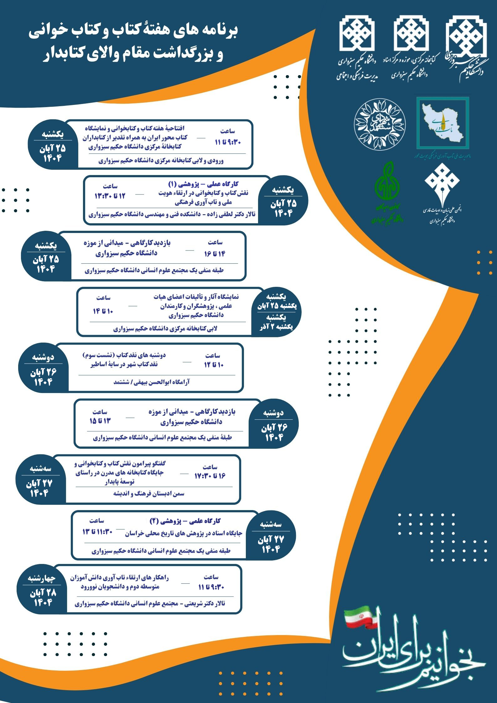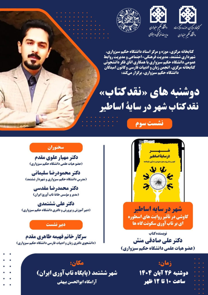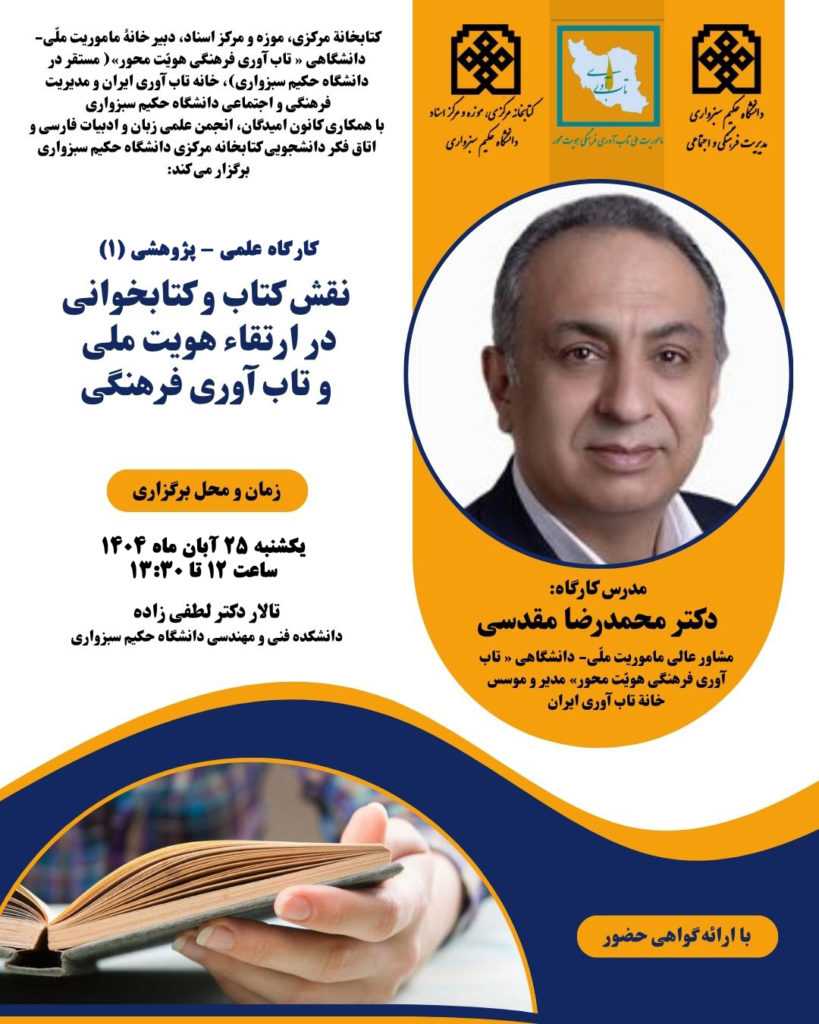 با همکاری کانون امیدگان، اتاق فکر دانشجویی کتابخانه مرکزی دانشگاه حکیم سبزواری، انجمن علمی زبان و ادبیات فارسی و دبیر خانه ماموریت ملّیّ – دانشگاهی « تاب آوری فرهنگی هویت محور» برگزار می کند: