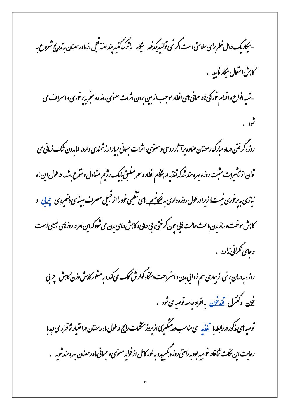 توصیه های تغذیه ای ماه مبارک رمضان