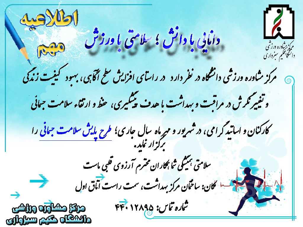 اطلاعیه ۱- طرح پایش جسمانی کارکنان و اعضای هیات علمی دانشگاه