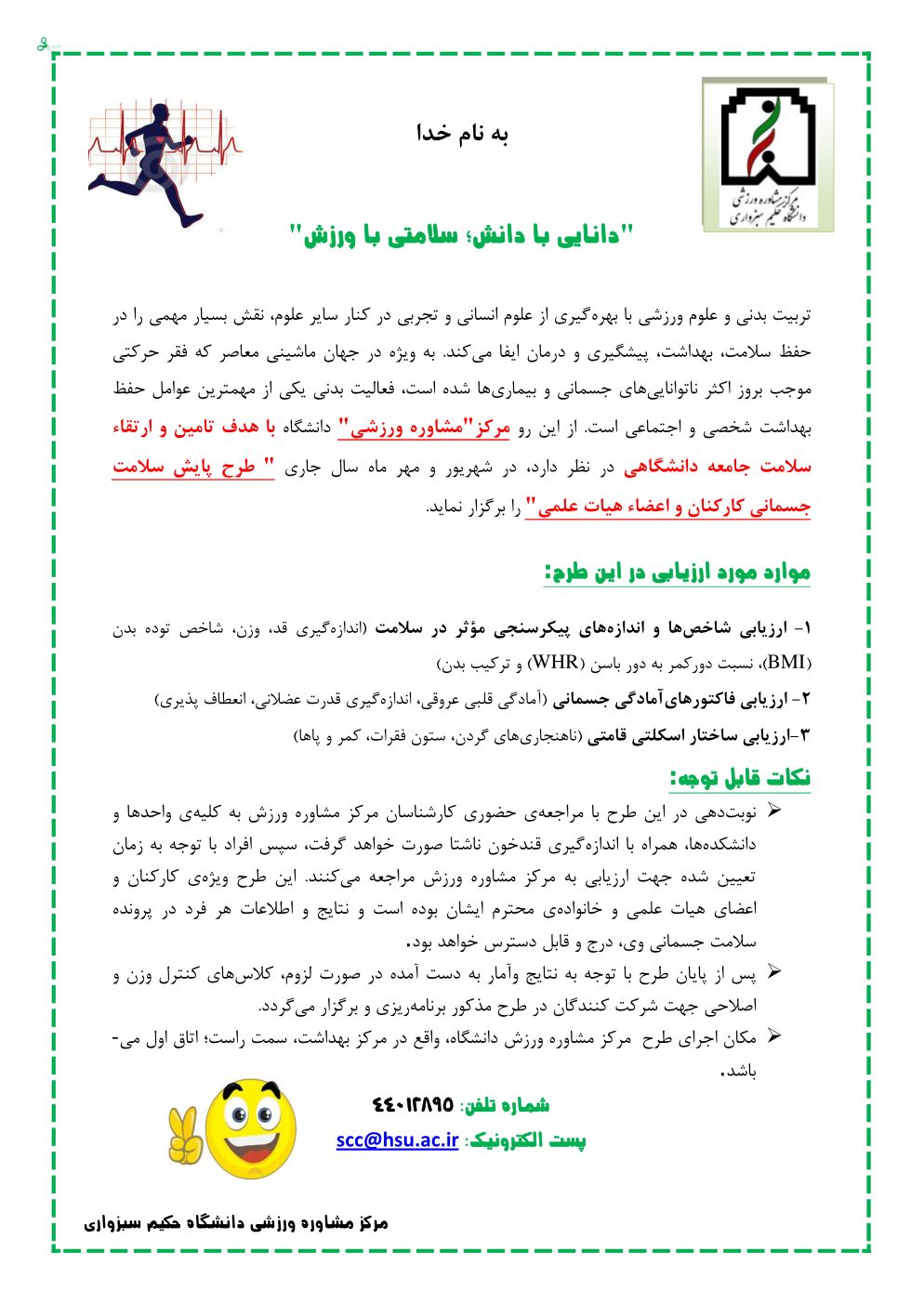 اطلاعیه ۲- طرح پایش جسمانی کارکنان و اعضای هیات علمی دانشگاه