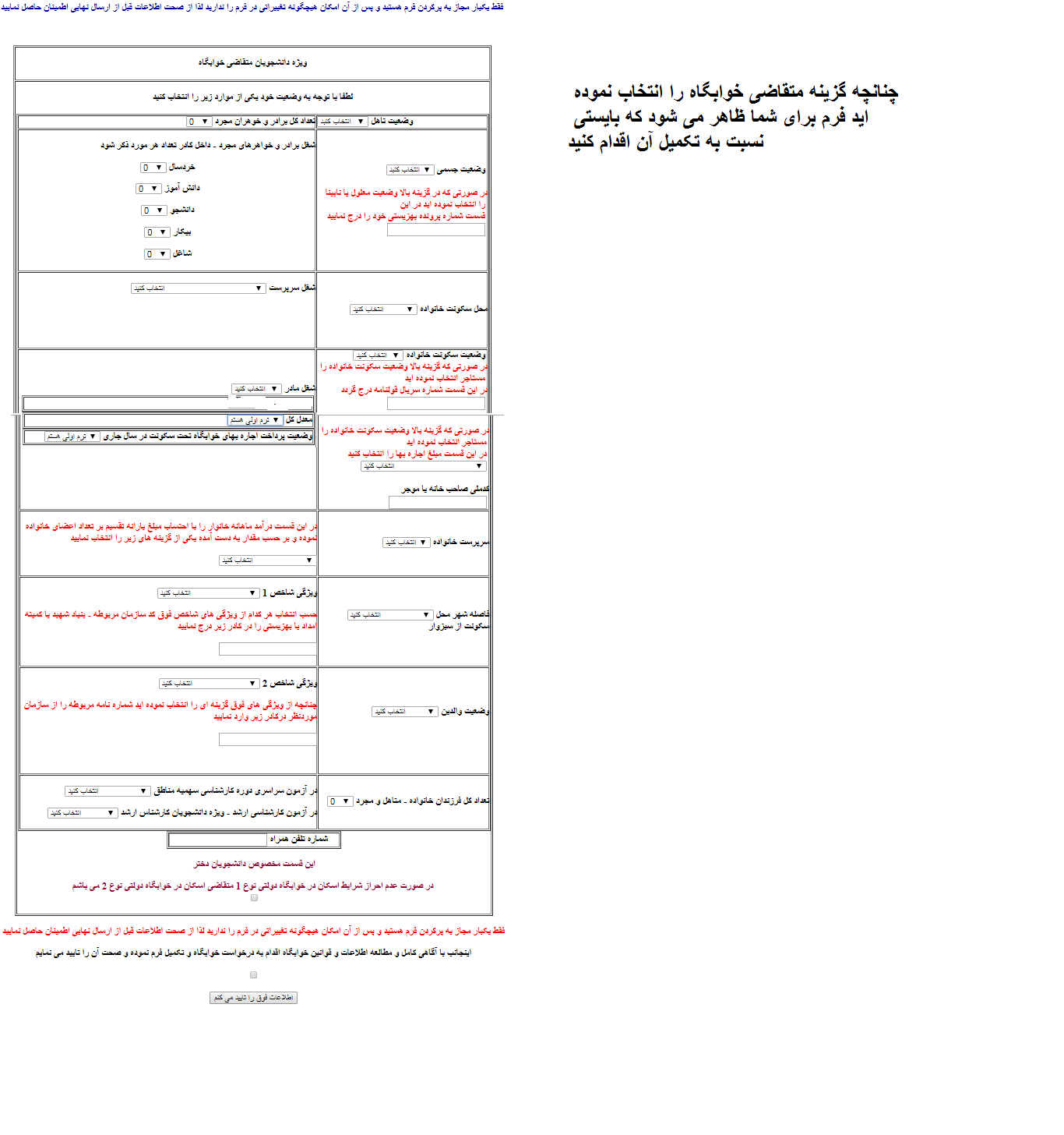 راهنمای پر کردن فرم امتیاز بندی خوابگاه ها ویژه دانشجویان جدیدالورود
