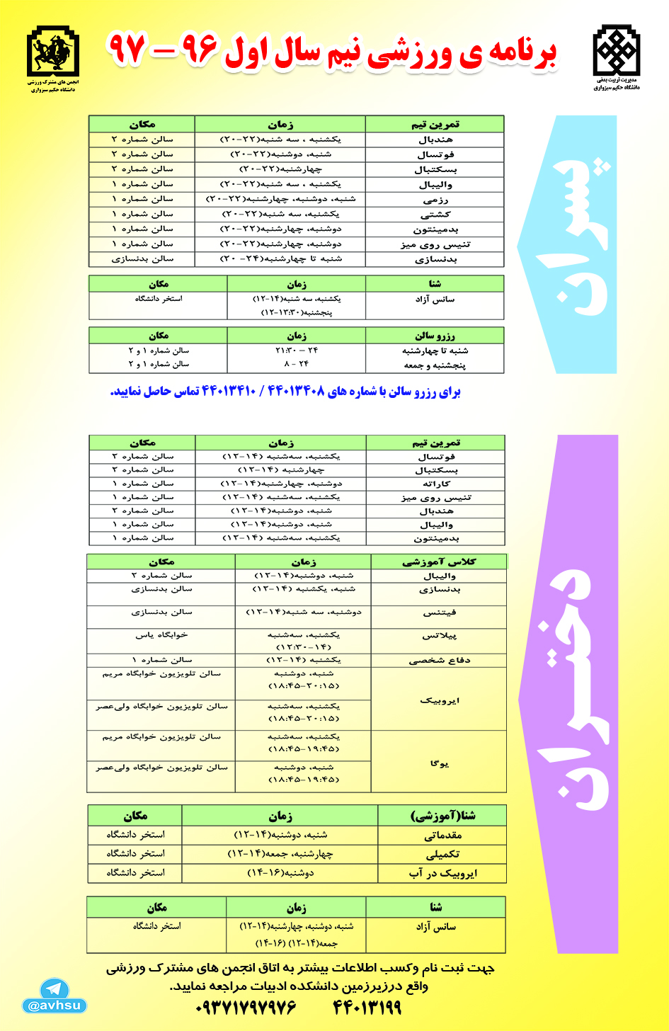 تقویم ورزشی نیمسال اول ۹۶-۹۷