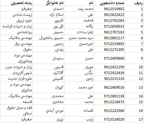 اسامی داوطلبان راه یافته به مرحله دوم انتخابات شورای صنفی دانشجویان به ترتیب حروف الفبا