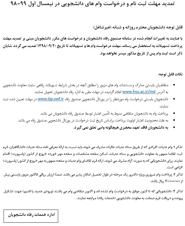 تمدید مهلت ثبت نام و درخواست وام های دانشجویی در نیمسال اول ۹۹-۹۸