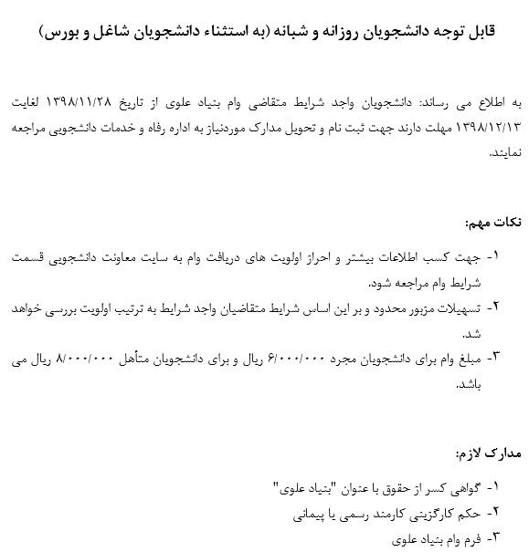 قابل توجه دانشجویان روزانه و شبانه (به استثناء دانشجویان شاغل و بورس)