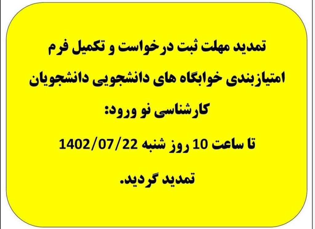 تمدید مهلت زمان ثبت درخواست و تکمیل فرم امتیاز بندی خوابگاه ها