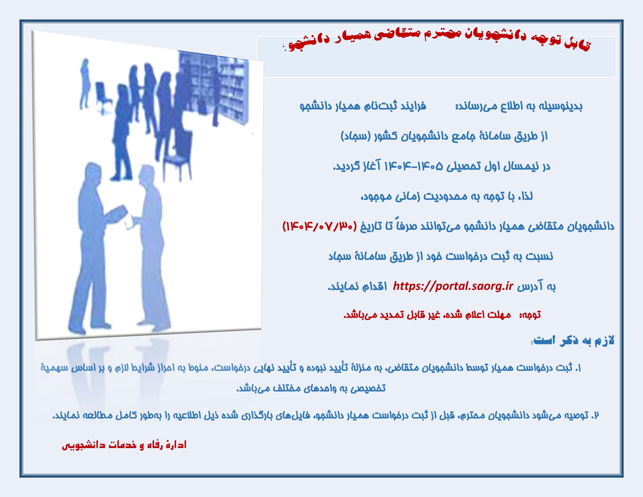 اطلاعیه ثبت نام همیار دانشجو نیمسال اول سال تحصیلی 1404