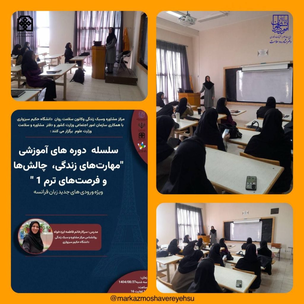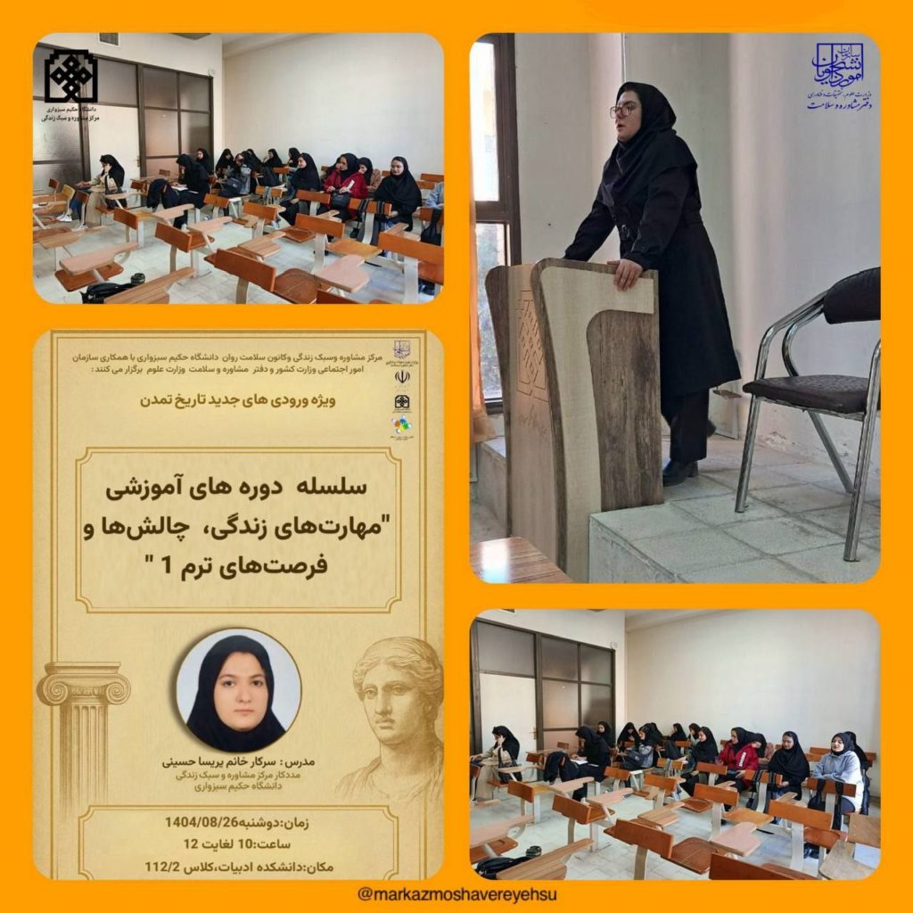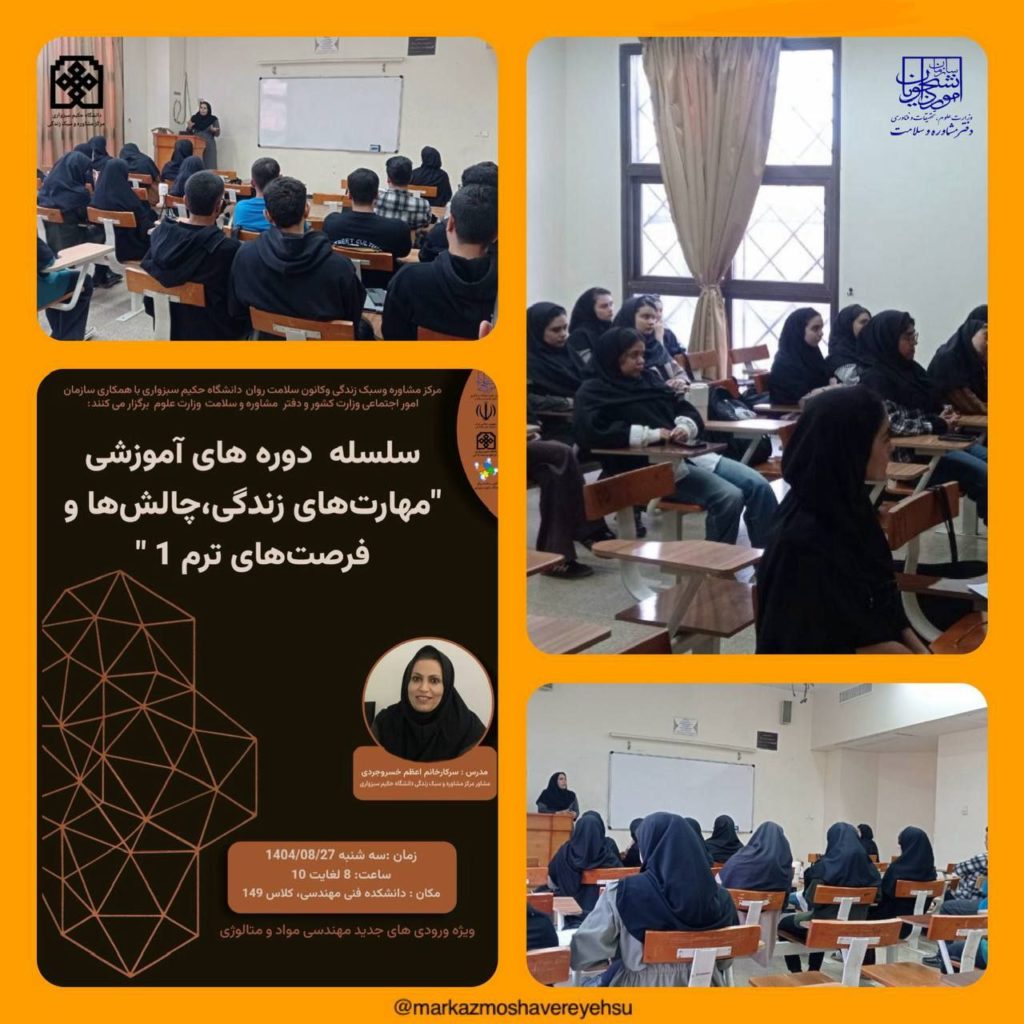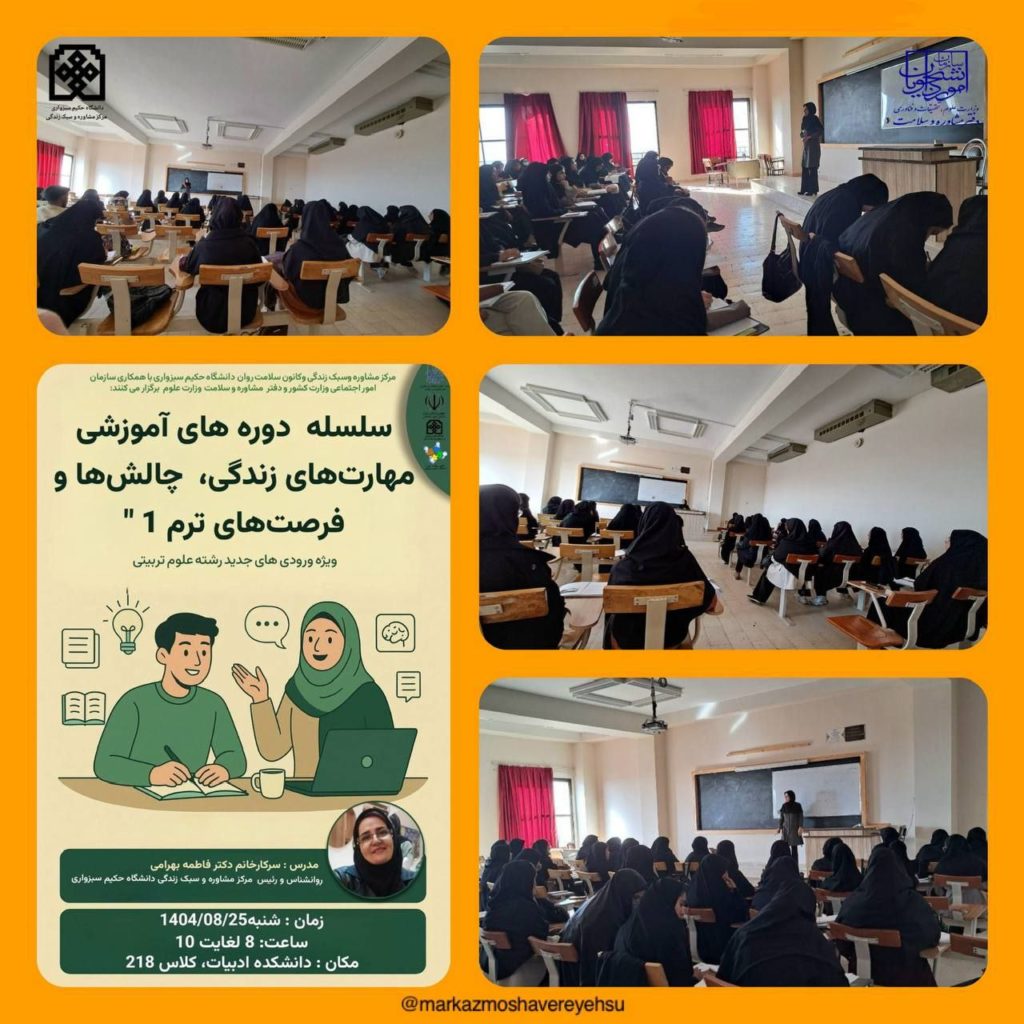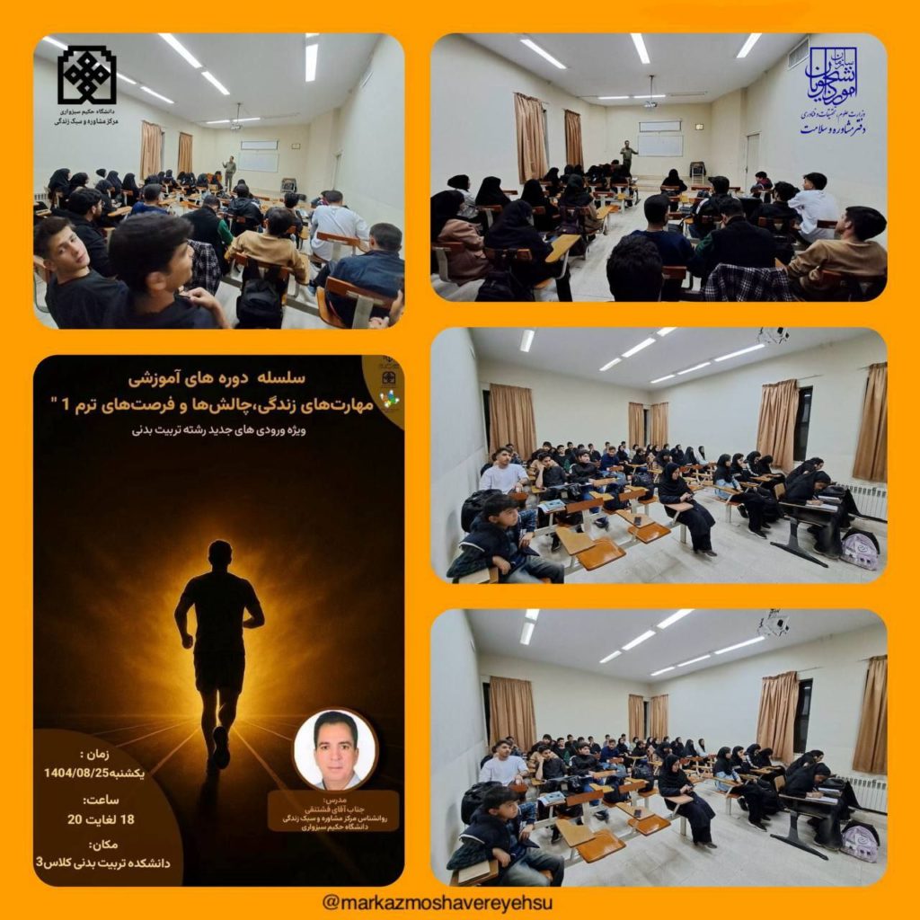 برگزاری 6 کارگاه آموزشی ” مهارتهای زندگی دانشجویی، چالشها و فرصتهای ترم 1″ویژه دانشجویان نوورود رشته های مختلف در هفته آخر آبان ماه توسط مرکز مشاوره و سبک زندگی دانشگاه حکیم سبزواری