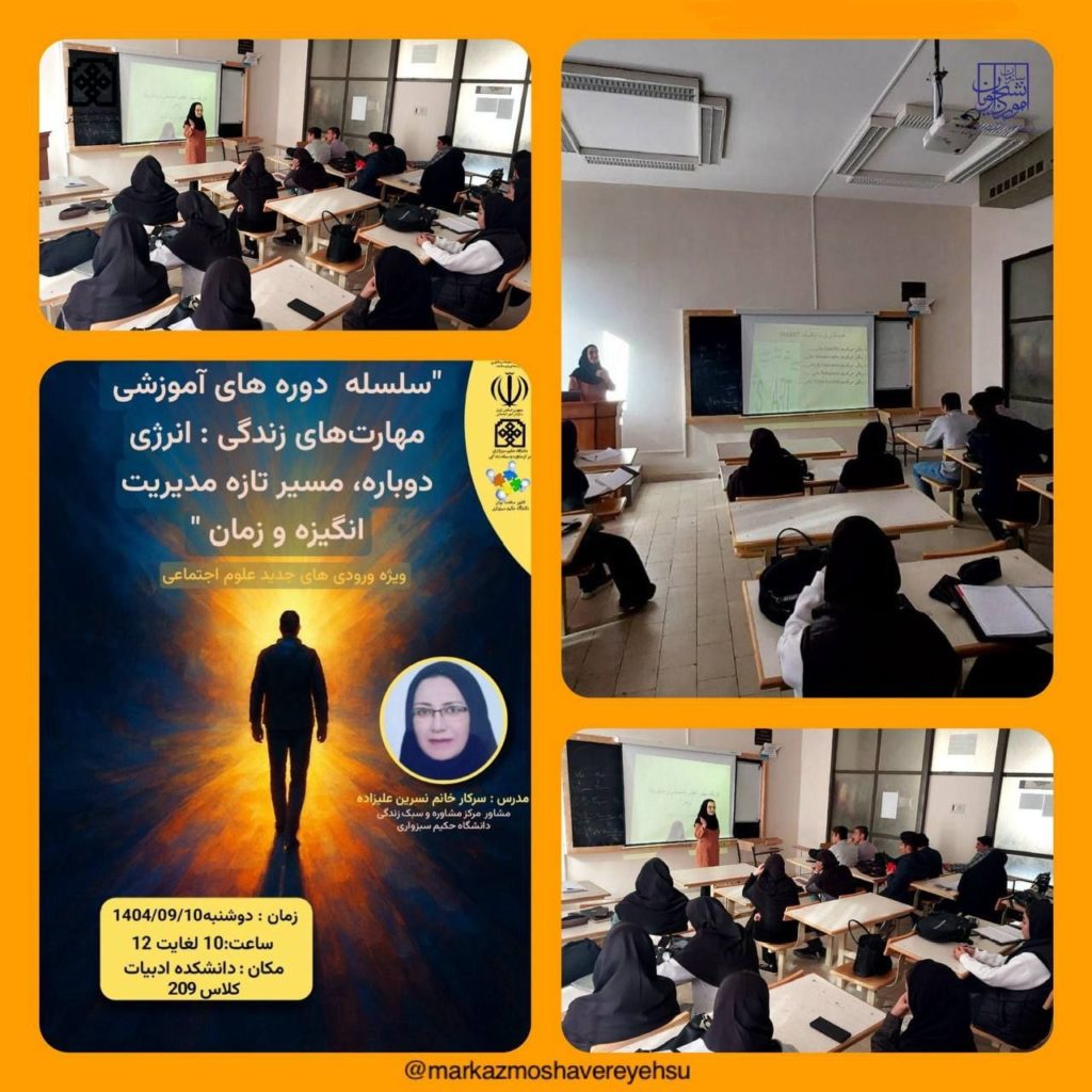 2- کارگاه آموزشی “انرژی دوباره، مسیر تازه مدیریت انگیزه و زمان” ویژه نوورودهای علوم اجتماعی با حضور خانم علیزاده مشاور مرکز مشاوره وسبک زندگی دانشگاه در روز دو شنبه مورخ 1404/09/10.