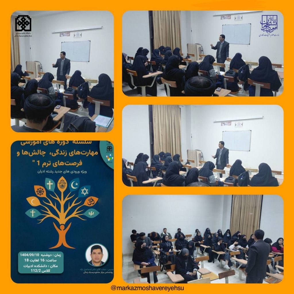 4-برگزاری کارگاه آموزشی” مهارتهای زندگی” ویژه نوورودهای رشته ادیان با حضور آقای دکتر اسماعیل نژاد روانشناس مرکز مشاوره و سبک زندگی در روز دوشنبه مورخ 1404/09/10.