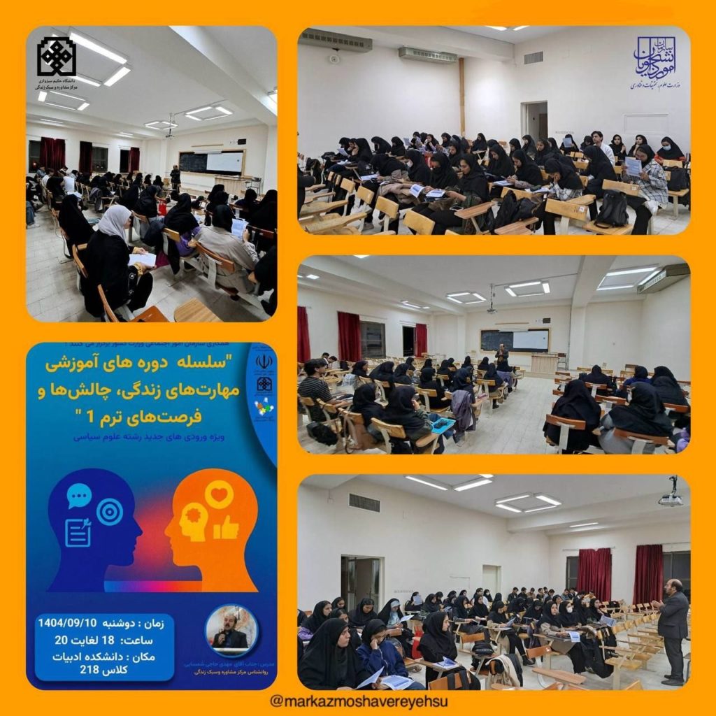 5-برگزاری کارگاه آموزشی “مهارتهای زندگی” ویژه نوورودهای رشته علوم سیاسی با حضور آقای حاجی شمسایی مشاور مرکز مشاوره وسبک زندگی در روز دوشنبه مورخ 1404/09/10.
