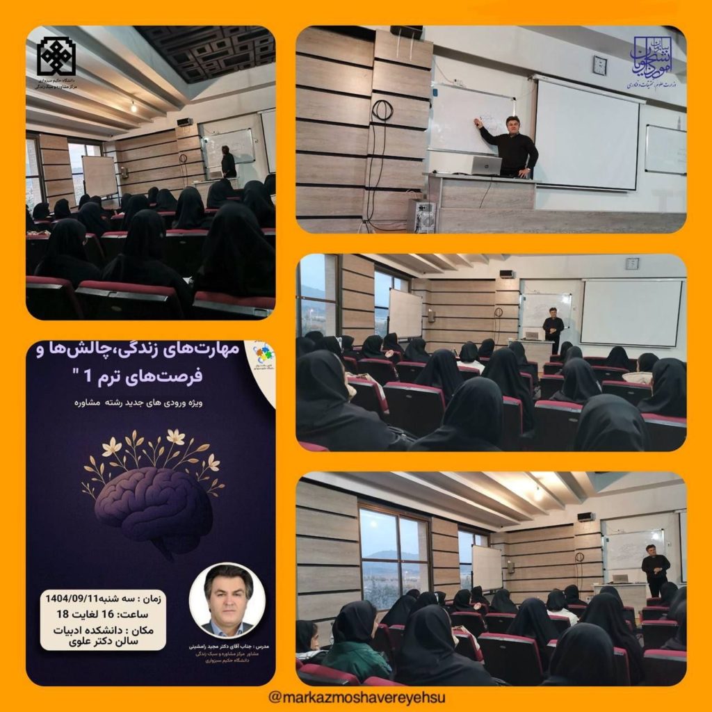 ✅گزارش تصویری برگزاری 5 کارگاه آموزشی ” مهارتهای زندگی دانشجویی، چالشها و فرصتهای ترم 1″ویژه دانشجویان نوورود رشته های مختلف در تاریخ 11 آذر ماه توسط مرکز مشاوره و سبک زندگی دانشگاه حکیم سبزواری.