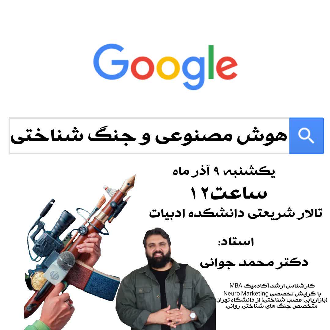 اطلاعیه هوش مصنوعی و جنگ شناختی استاد دکتر محمد جوانی متخصص علوم شناختی و جنگ روانی،کارشناس ارشد آکادمیک MBA با گرایش تخصصی Neuro Marketing (بازاریابی عصب شناختی) از دانشگاه تهران