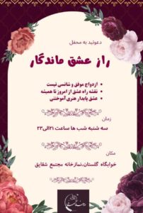 🖇کانون پیوند آسمانی دانشگاه حکیم سبزواری تقدیم میکند… ⭕️سلسله جلسات کارگاهی 🔹🔹راز عشق ماندگار🔹🔹 🌱ازدواج موفق شانسی نیست 🌱عشق پایدار هنری آموختنی 🌱نقشه راه عشق