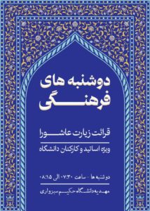 ⚡️ دوشنبه های فرهنگی 📖 قرائت زیارت عاشورا 🔹 ویژه اساتید و کارکنان 🗓 دوشنبه ۲۶ آبان ماه – ساعت ۰۷:۳۰ صبح 🕌 مکان: مهدیه