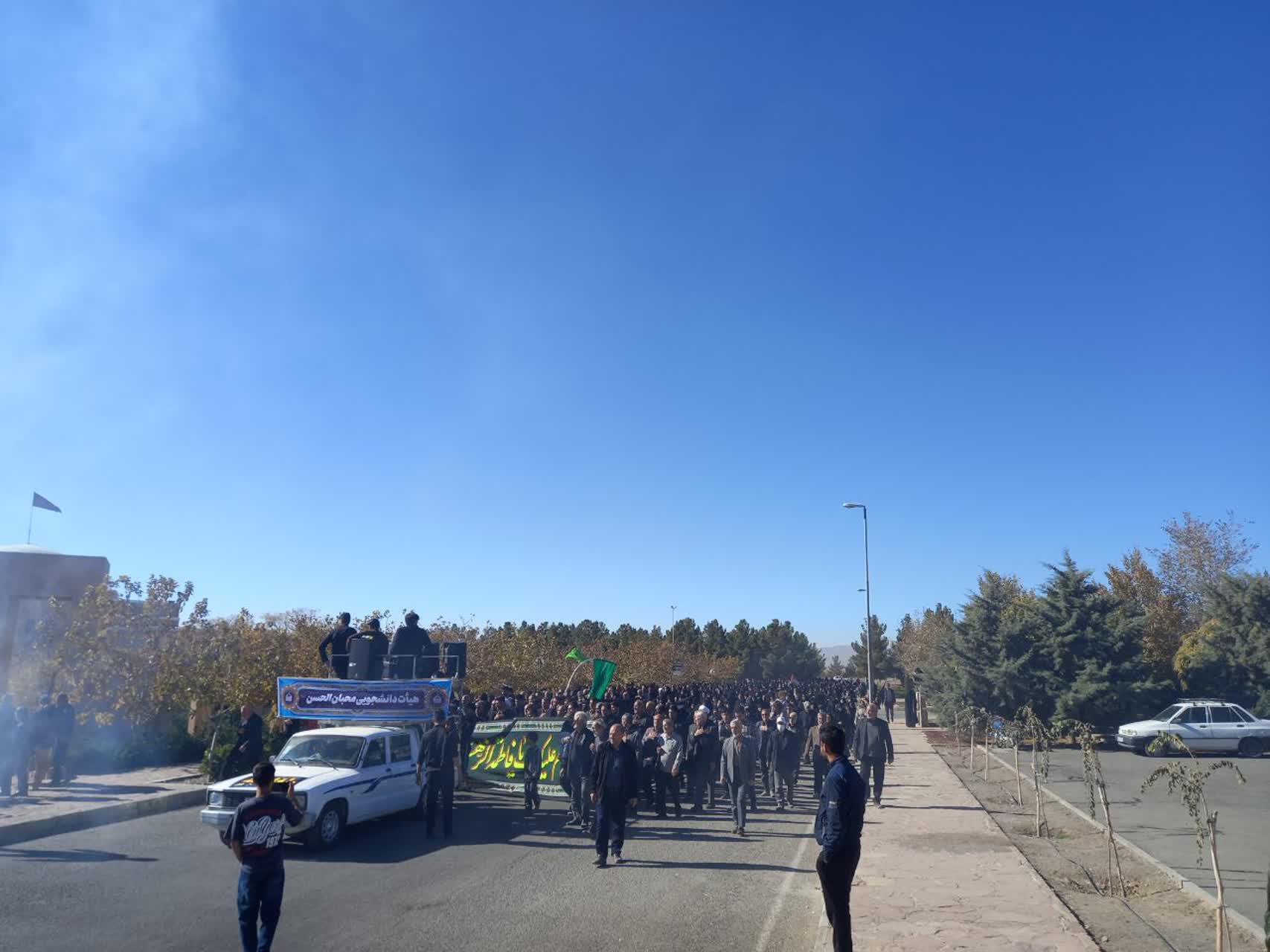 با حضور گسترده مردم و دانشگاهیان، دستهروی مشترک هیئت دانشجویی محبانالحسن(ع) دانشگاه حکیم سبزواری و مساجد توحیدشهر، روز ۳ آذر از مسجدالنبی (ص) توحیدشهر تا مهدیه دانشگاه حکیم سبزواری برگزار شد.