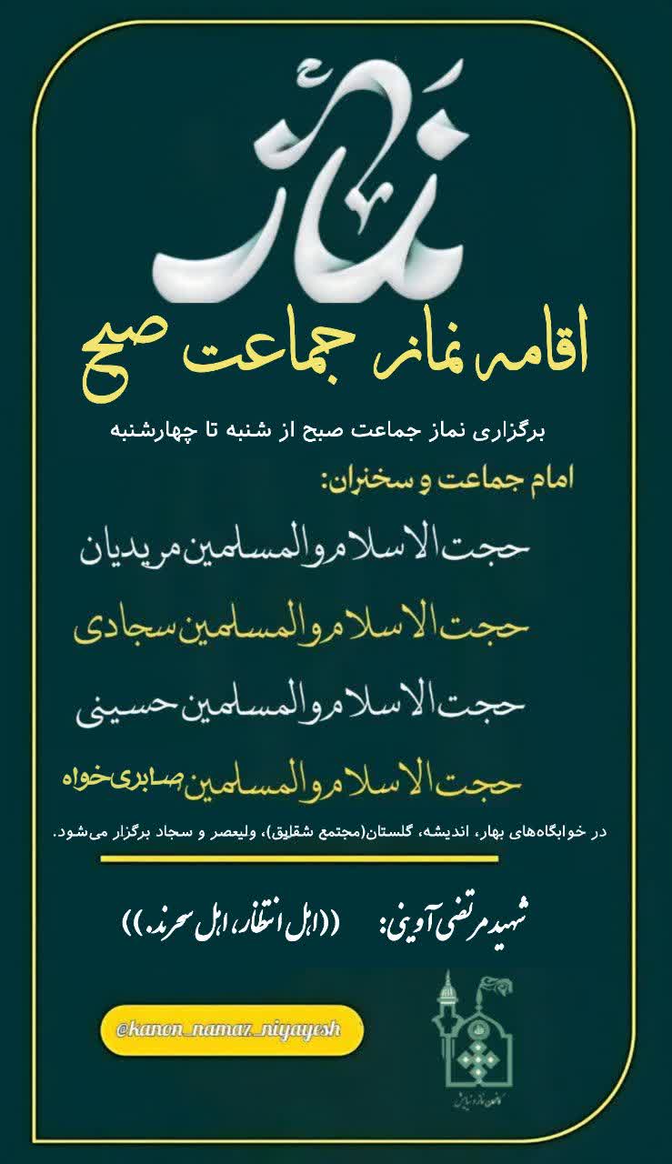 🗓 از شنبه تا پنج شنبه، نماز جماعت صبح در خوابگاه برگزار میشود