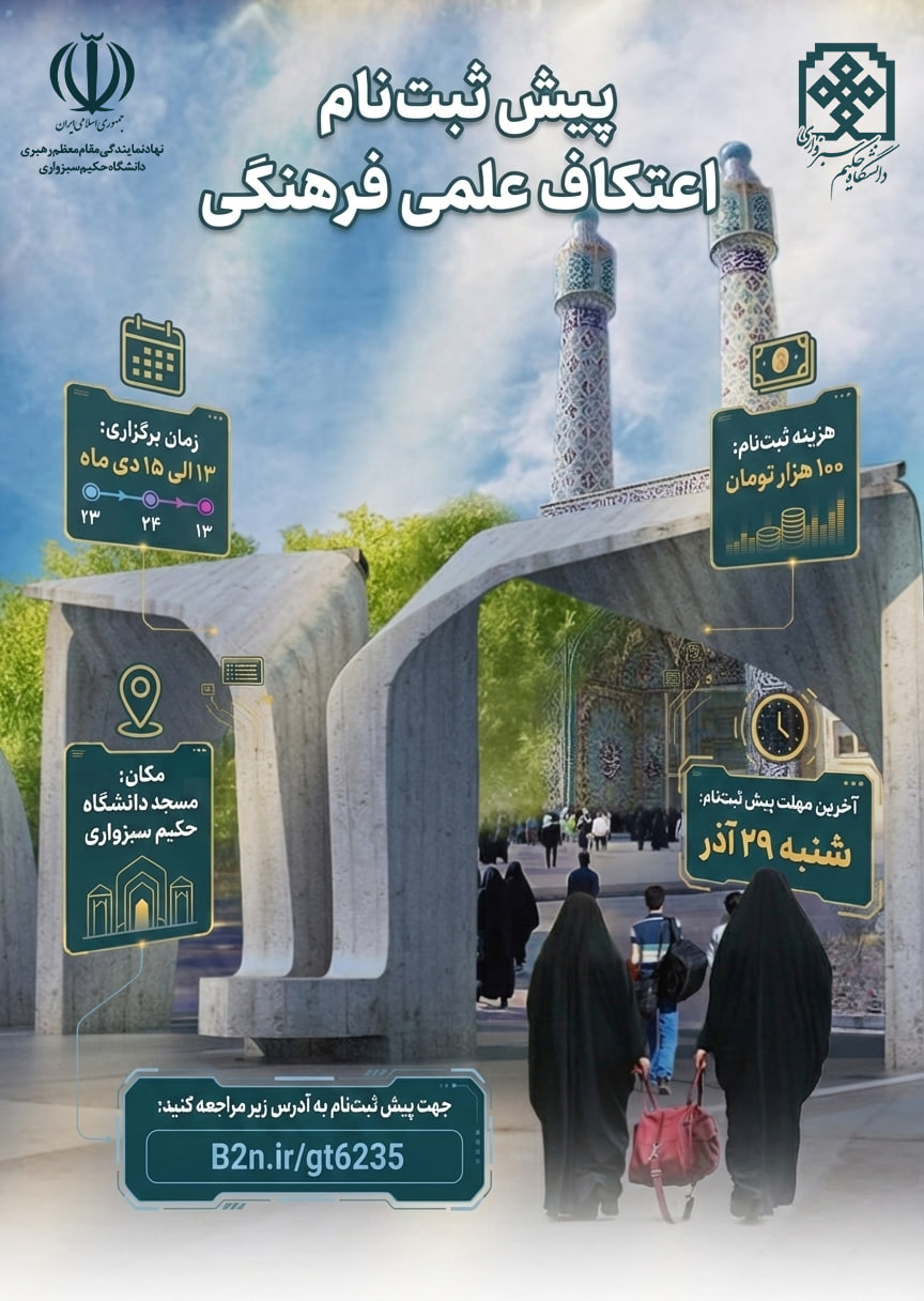 ⭕️ تمدید پیش ثبت نام مراسم اعتکاف علمی فرهنگی دانشجویی دانشگاه حکیم سبزواری