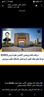 دریافت فاند پژوهشی آکادمی علوم اتریش (OAW) توسط عضو هیأت علمی دانشگاه حکیم سبزواری دی 3, 1404 ادامه مطلب »