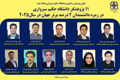 یازده پژوهشگر دانشگاه حکیم سبزواری در جمع دانشمندان پراستناد ۲ درصد برتر جهان در سال ۲۰۲۵ مهر 7, 1404