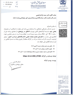 تقدیر آقای دکتر زیدآبادی از آقای دکتر سعادتی و آقای اسدی دانشجوی دکتری جهت برگزاری کارگاه تخصصی در هفته پژوهش ادامه مطلب » اردیبهشت ۳۰, ۱۴۰۳