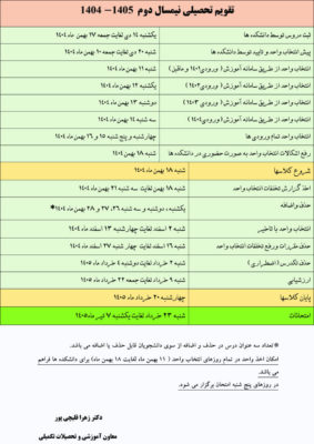 تقویم آموزشی نیمسال دوم سال تحصیلی 1405-1404